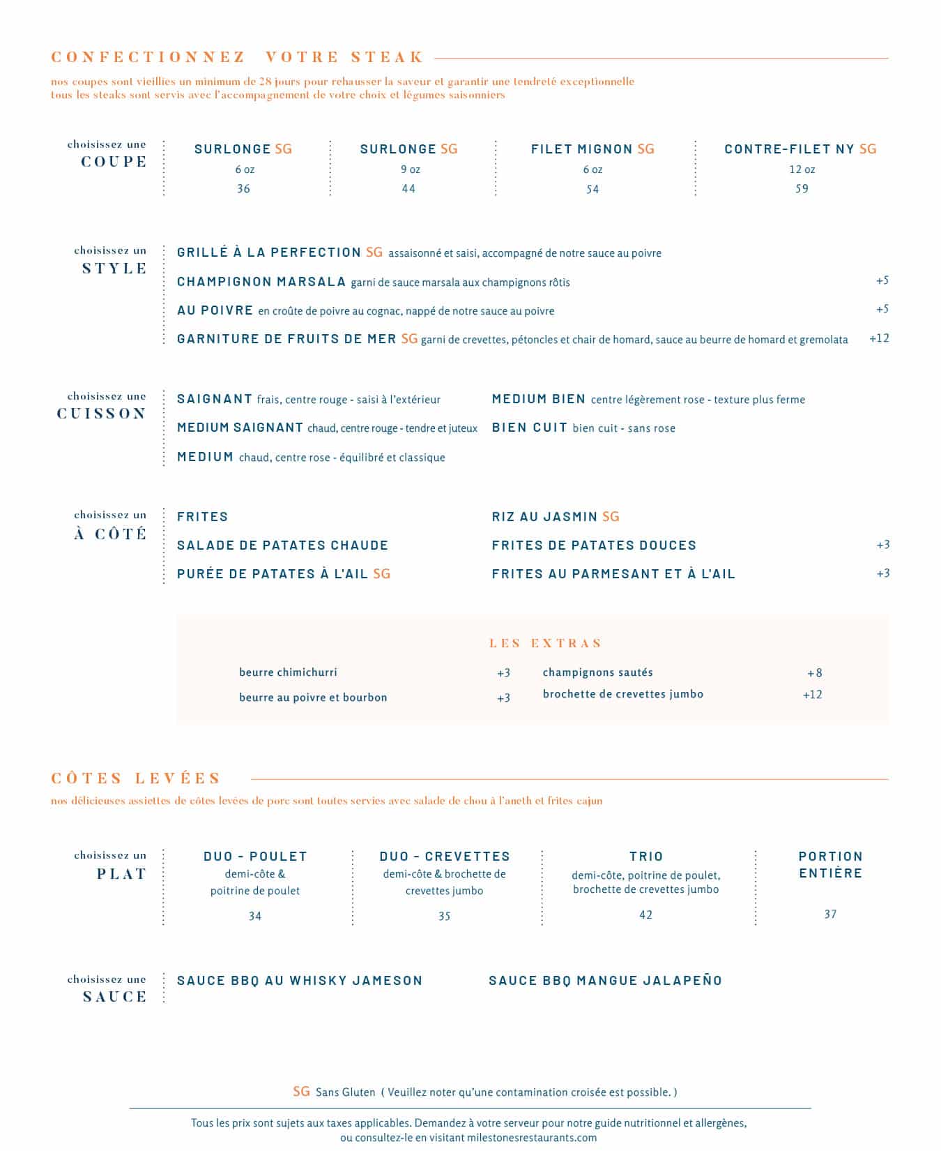 Toutes les taxes applicables sont en sus. Les produits « Gluten Friendly » sont préparés avec des ingrédients sans gluten, mais il faut savoir qu’une contamination croisée avec des produits contenant du gluten peut se produire dans notre cuisine pendant la préparation. Demandez les détails à votre serveur. Certains items peuvent contenir des noix et/ou des allergènes. Attention allergies alimentaires – la sécurité et la satisfaction de nos hôtes sont notre priorité absolue. Bien que des précautions soient prises pour gérer le risque de contamination croisée des allergènes dans notre cuisine, il est possible qu’une contamination croisée se produise pendant la préparation. Par conséquent, nous ne pouvons pas garantir qu’un plat au menu est exempt d’arachides, de noix et autres allergènes.