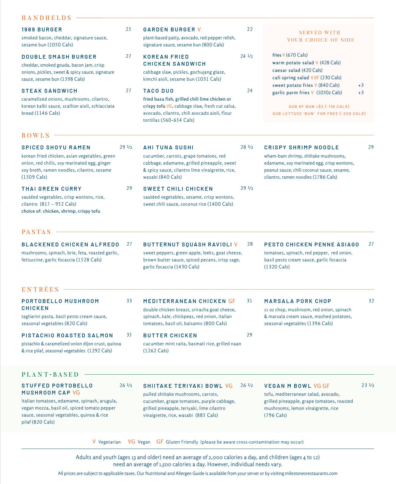 Toutes les taxes applicables sont en sus. Les produits « Gluten Friendly » sont préparés avec des ingrédients sans gluten, mais il faut savoir qu’une contamination croisée avec des produits contenant du gluten peut se produire dans notre cuisine pendant la préparation. Demandez les détails à votre serveur. Certains items peuvent contenir des noix et/ou des allergènes. Attention allergies alimentaires – la sécurité et la satisfaction de nos hôtes sont notre priorité absolue. Bien que des précautions soient prises pour gérer le risque de contamination croisée des allergènes dans notre cuisine, il est possible qu’une contamination croisée se produise pendant la préparation. Par conséquent, nous ne pouvons pas garantir qu’un plat au menu est exempt d’arachides, de noix et autres allergènes.