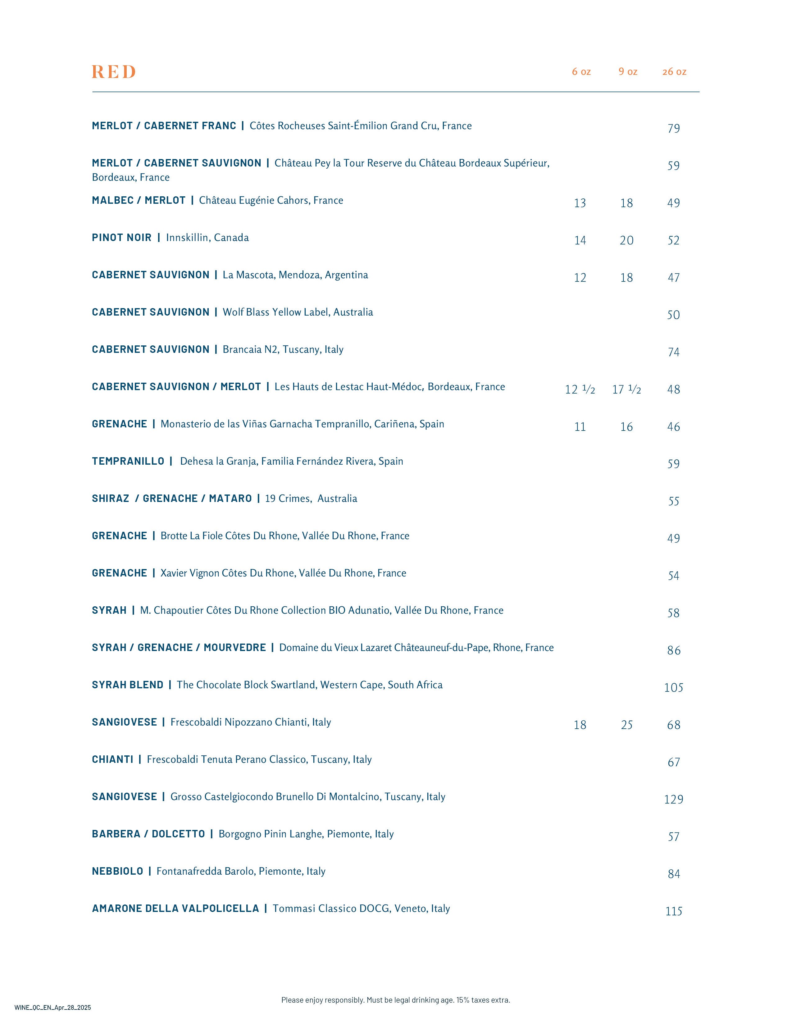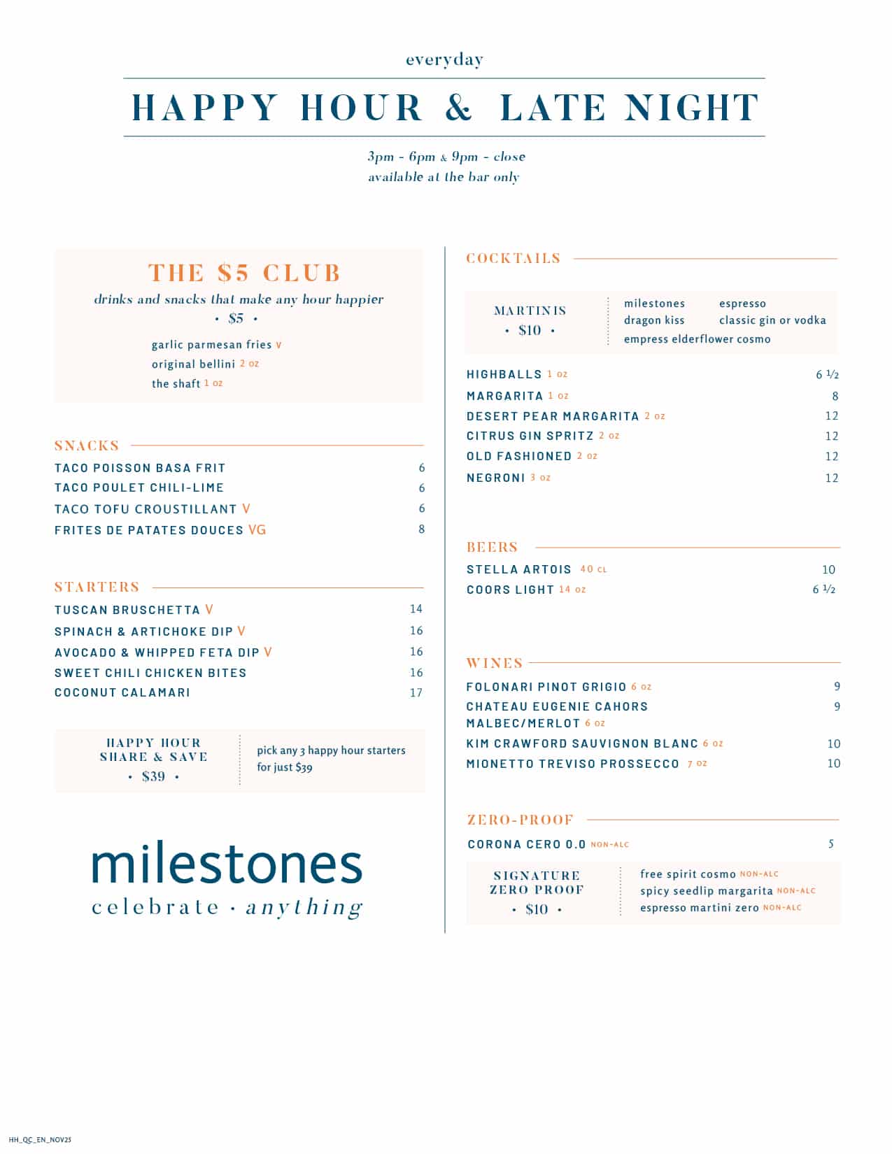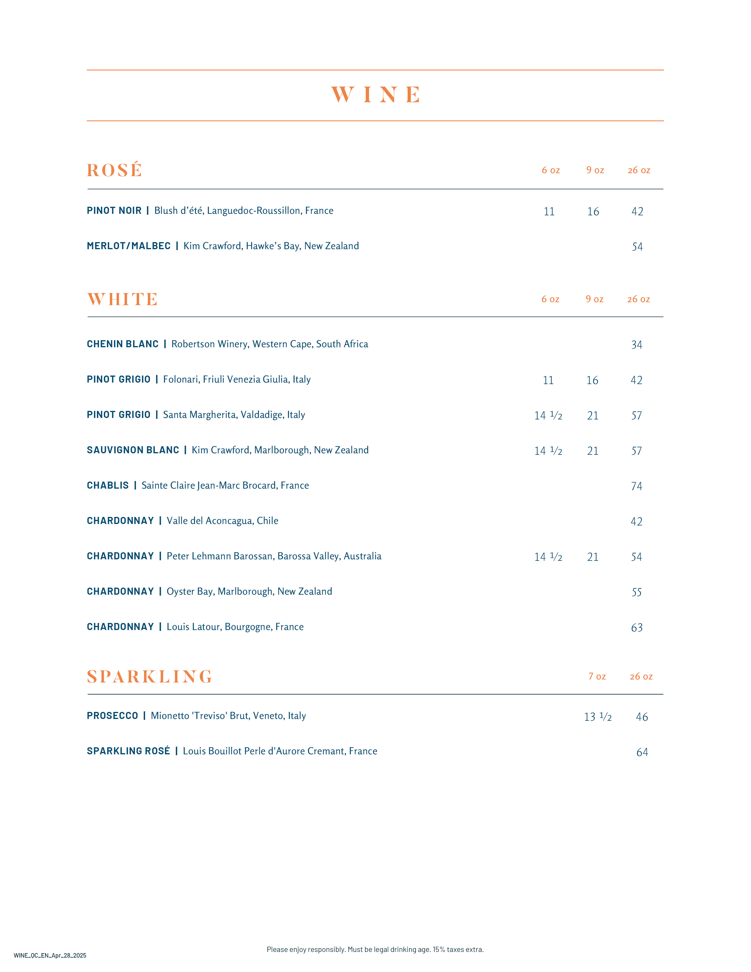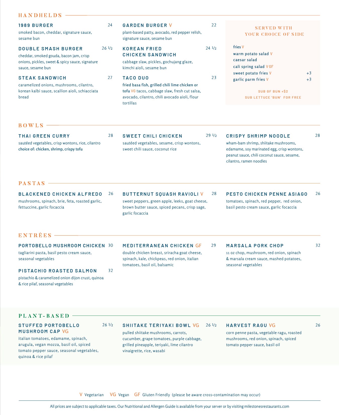 All applicable taxes extra. Gluten Friendly items are made with gluten-free ingredients, however, please be advised that cross contamination with gluten containing products may occur in our kitchen during preparation. Please ask your server for details. Some items may contain nuts and/or allergens. Food Allergy Caution – the safety and satisfaction of our Guests is our highest priority. Although precaution is taken to manage the risk of allergen cross contamination in our kitchen, please be advised that there is a possibility of cross contamination occurring during preparation. Therefore, we cannot guarantee that a menu item is free of peanuts, tree nuts and | or other allergens.