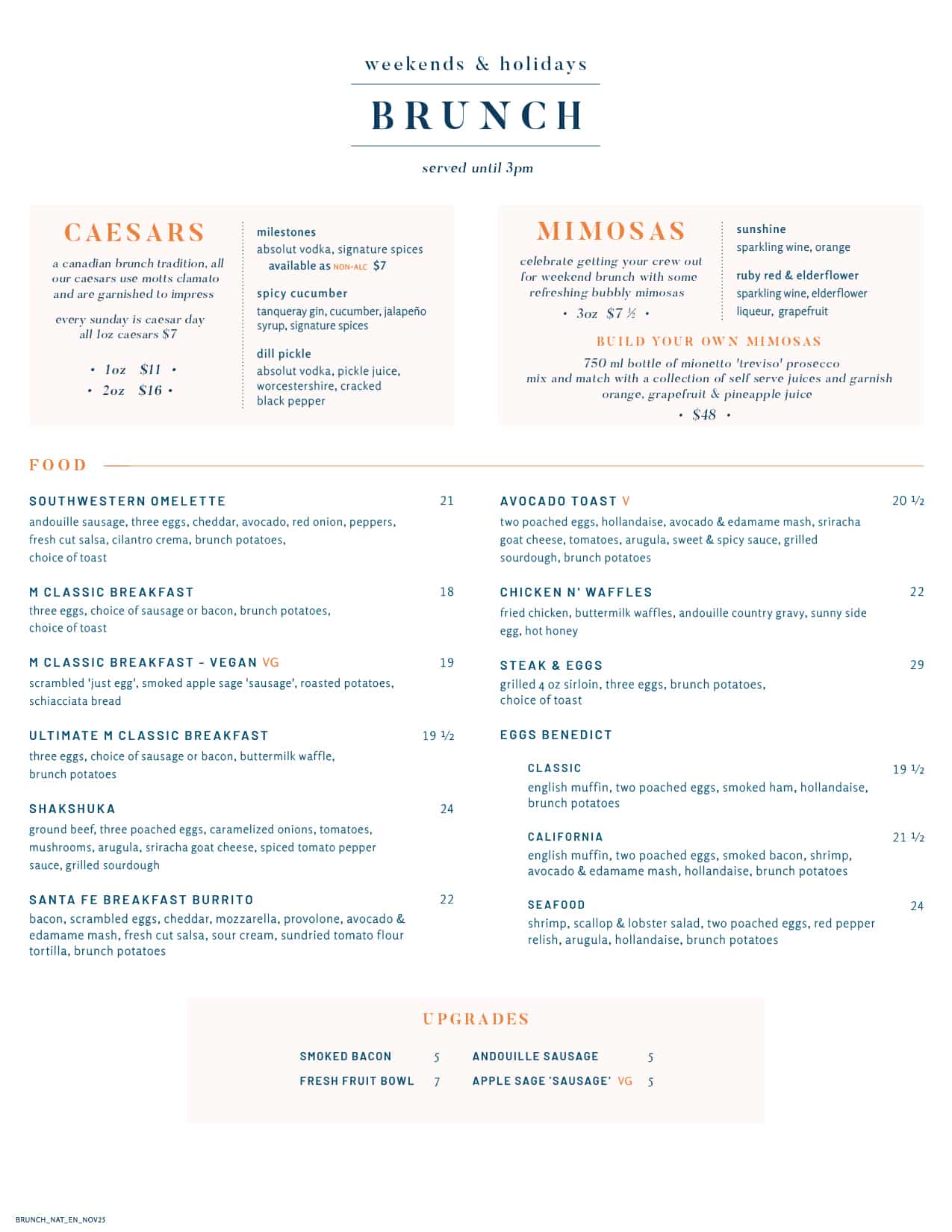 See Ingredient & Allergen guide: regular menu ; brunch/lunch menu